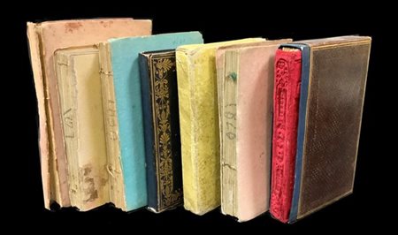 [MILANO - ALMANACCHI] Le glorie delle Arti Belle. 6 volumi dal 1827 al 1831 stampati da Milano, Vallardi. Numerose belle tavole nel testo. Legature coeve in cartonato e una pregiata legatura in velluto rosso conservata entro cofanetto in simil marocchino. Nel lotto anche "Esposizioni di Belle Arti in Brera, Almanacco per l'anno 1827". Milano: Ubicini, 1827 in pregiata legatura blu decorata in oro. Non collazionato e difetti da esaminare.