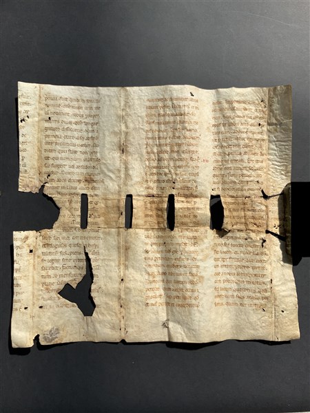 [PAPA GREGORIO MAGNO] Frammento manoscritto su pergamena di riuso XIII-XIV seco