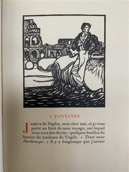 [PICHON] - CHATEAUBRIAND, Francois-Rene de. La campagne romaine. Lettre a M. de Fontanes. Cynthie. Parigi: Leon Pichon, 1919. Uno dei più pregiati esamplari in antica carta giapponese in pregiata legatura in marocchino rosso entro portfolio e cofanetto appositamente fabbricati. Esemplare n. 25 con suites aggiuntive di tavole