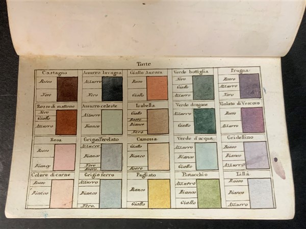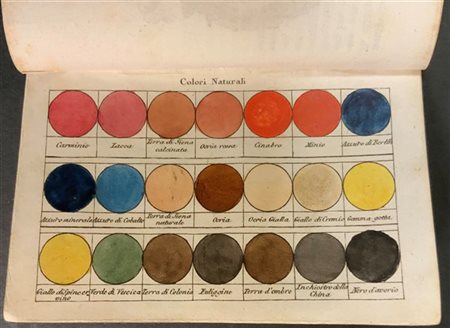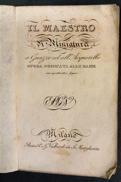[PITTURA] Il maestro di miniatura a guazzo ed a acquarello. Milano: Vallardi, 1820].14 tavole incise in rame, alcune a colori. 8vo, buona copia di questo curioso libretto in carta editoriale azzurra (manca la brossura superiore). Non collazionato e difetti da esaminare.