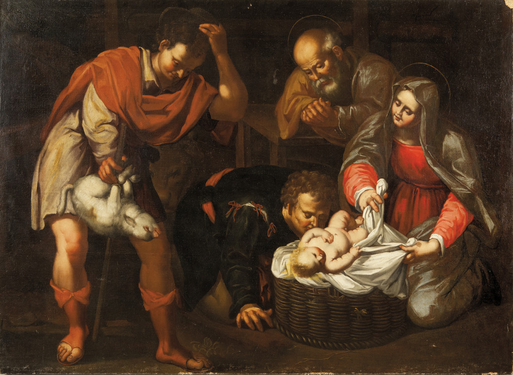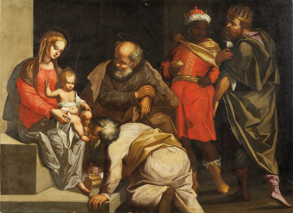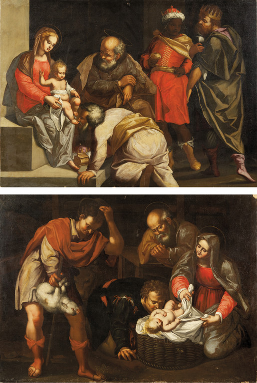 Scuola napoletana sec.XVII 'L'Adorazione dei Re Magi' e 'L'Adorazione dei pastori' coppia di olii