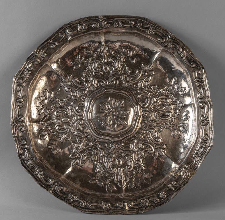 Vassoio Luigi XV in argento sbalzato Spagna sec.XVIII
