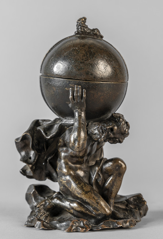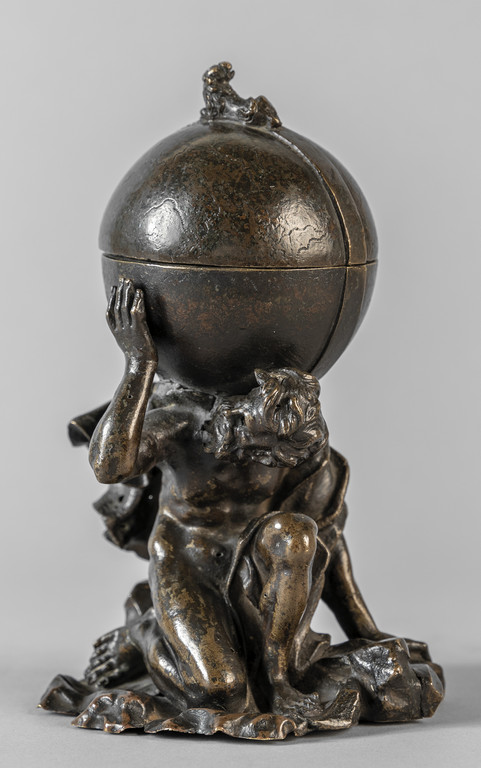 Calamaio in bronzo raffigurante Atlante che sorregge il mondo sec.XVII