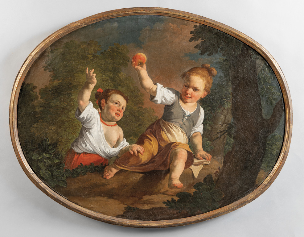 Scuola emiliana sec.XVIII 'La mela avvelenata gioco di bambini' olio di forma ovale