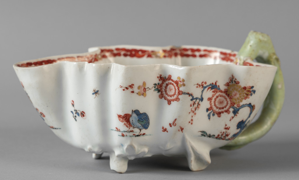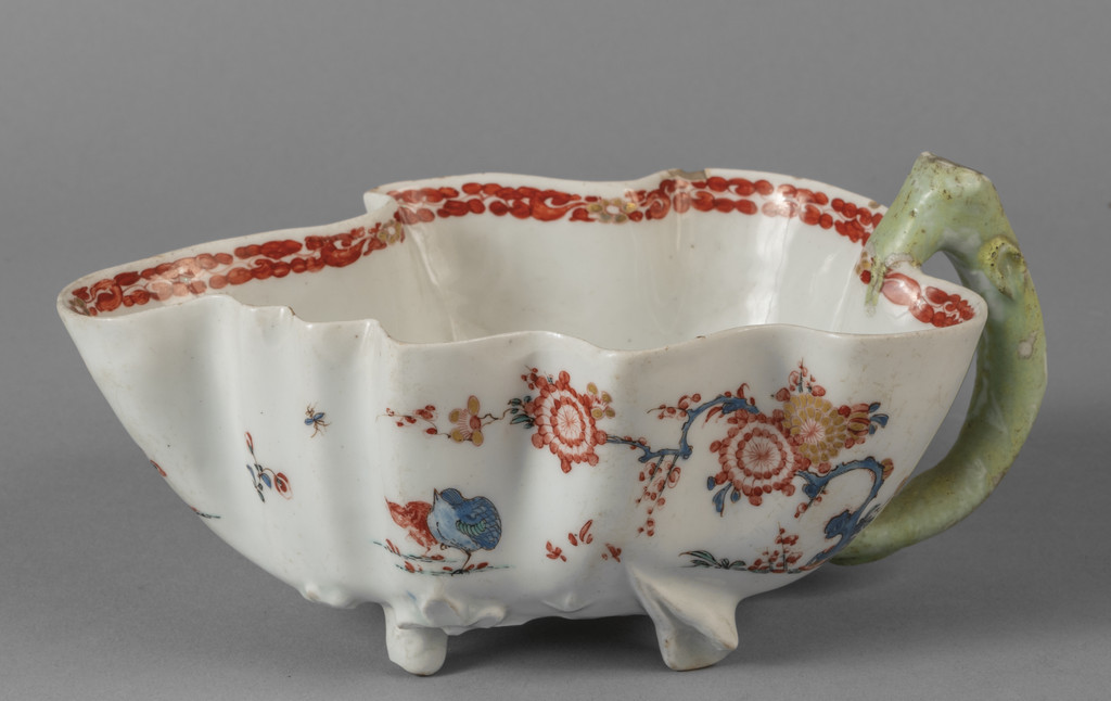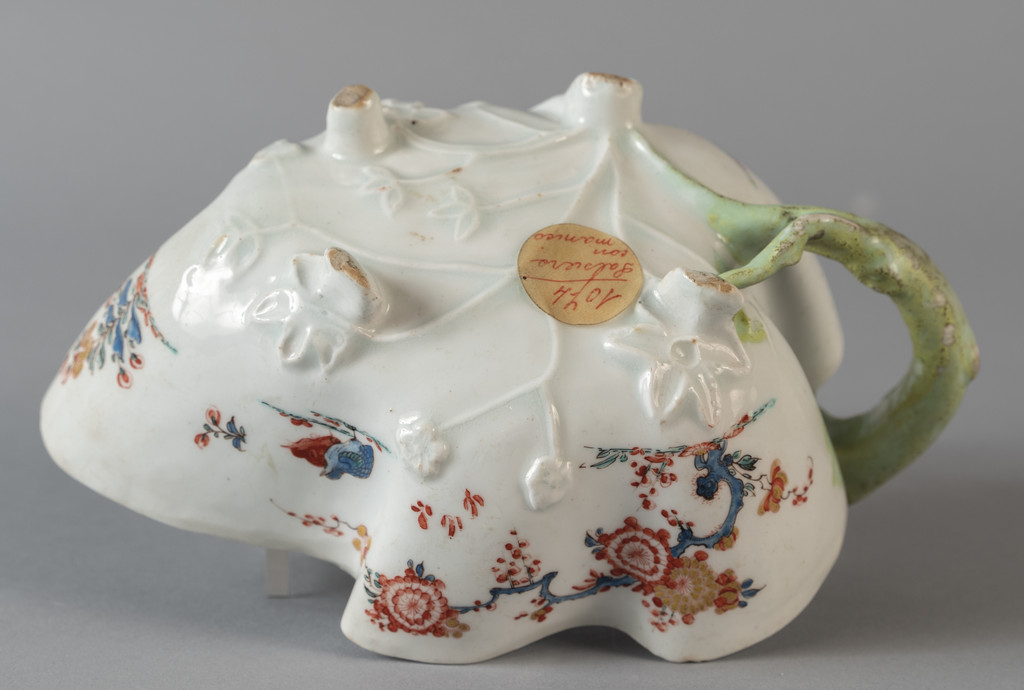 Grande salsiera in porcellana bianca a forma di foglia Chelsea circa 1750