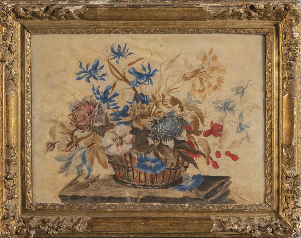 'Natura morta' tempera su pergamena Piemonte sec. XVIII cornice antica