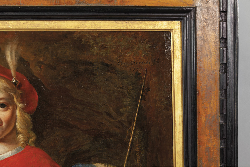 'Due fratelli a cavallo di una capra' olio f.to in a. a ds. e d.to 1670