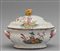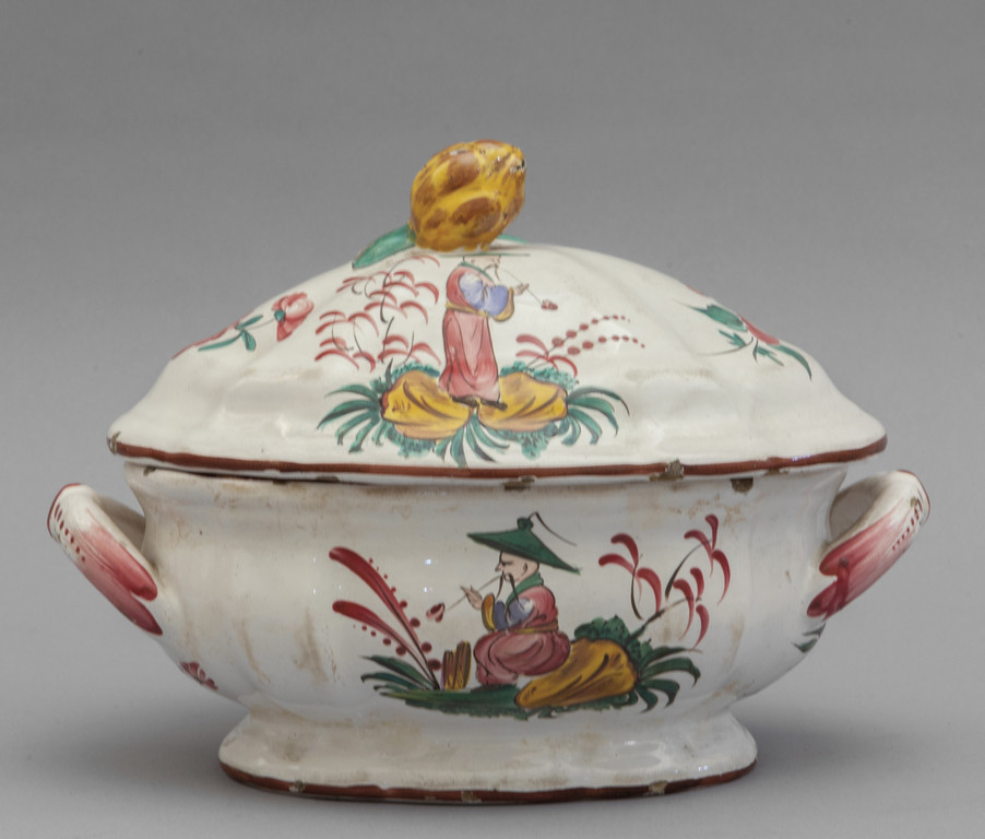 Piccola zuppiera decorata in policromia con cinesini su fondo bianco Francia fine sec.XVIII bollino antichità Wannenes Genova