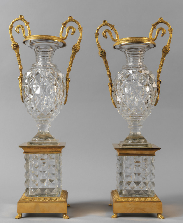 Coppia di vasi in cristallo e bronzo dorato sec.XIX