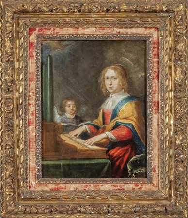 Scuola francese sec.XVII 'Santa Cecilia' olio su rame cornice Luigi XV in legno intagliato e dorato