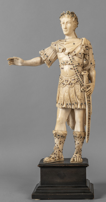 Imperatore Augusto antica scultura in avorio con incastonate pietre semipreziose sec. XVIII/XIX