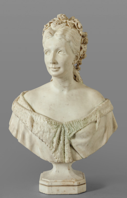 Giovane donna scultura in marmo statuario con base f.ta Marcello 1867