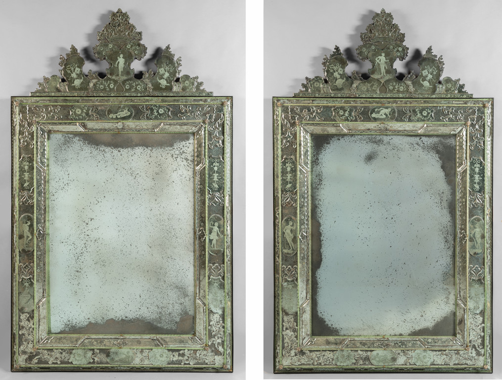Coppia di grandi specchiere in vetro molato Venezia sec.XIX