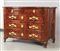 Comò Luigi XIV intarsiato in bois de rose mosso sul fronte e sui fianchi tre cassetti più due Piemonte inizi sec.XVIII