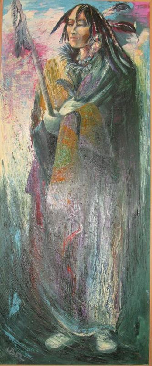 GATTI LUCIANO UBER Indiana. Olio su tela. Cm 154x64. Firma in basso a sinistra.