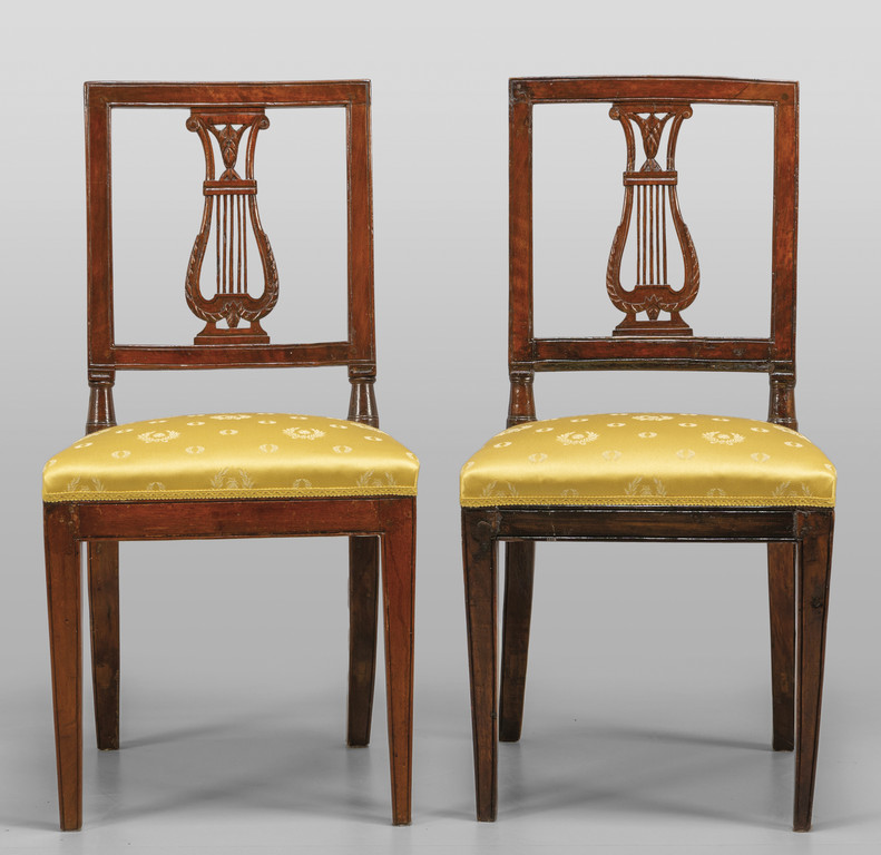 Otto sedie Direttorio con schienale a lira Genova inizi sec.XIX (difetti)