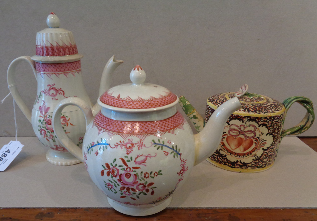 Tre caffettiere in ceramica policroma fine sec.XVIII