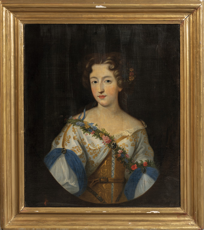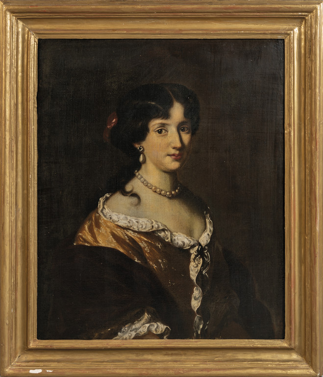 Scuola romana seconda metà sec. XVII 'Ritratti di giovani dame' sette olii cornici in legno dorato