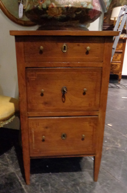 Comodino Direttorio a tre cassetti in massello di noce filettato Genova sec.XIX