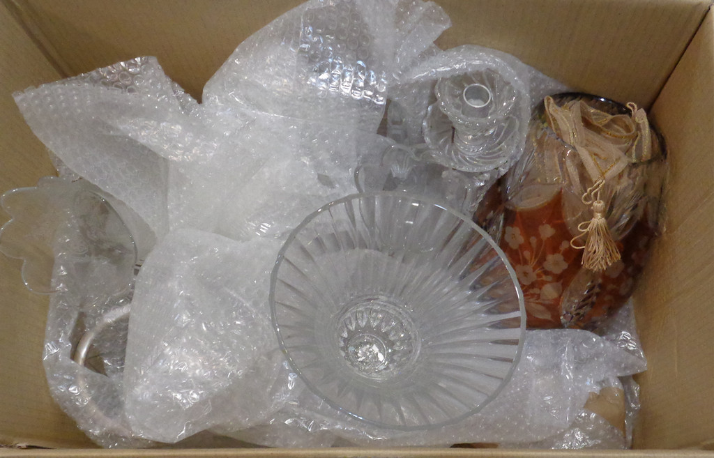 Scatola magica con quattro vasi di fiori e candeliere in cristallo a due braccia