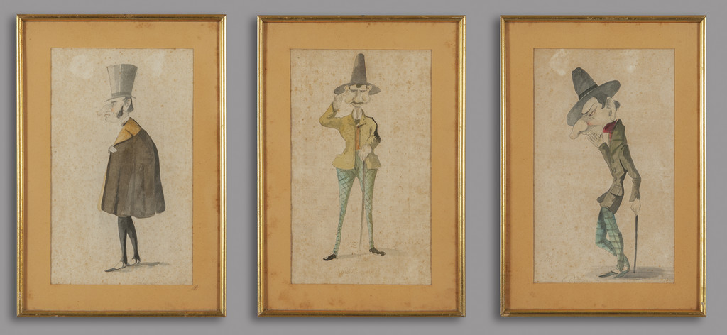 'Caricature' tre disegni acquarellati e f.ti