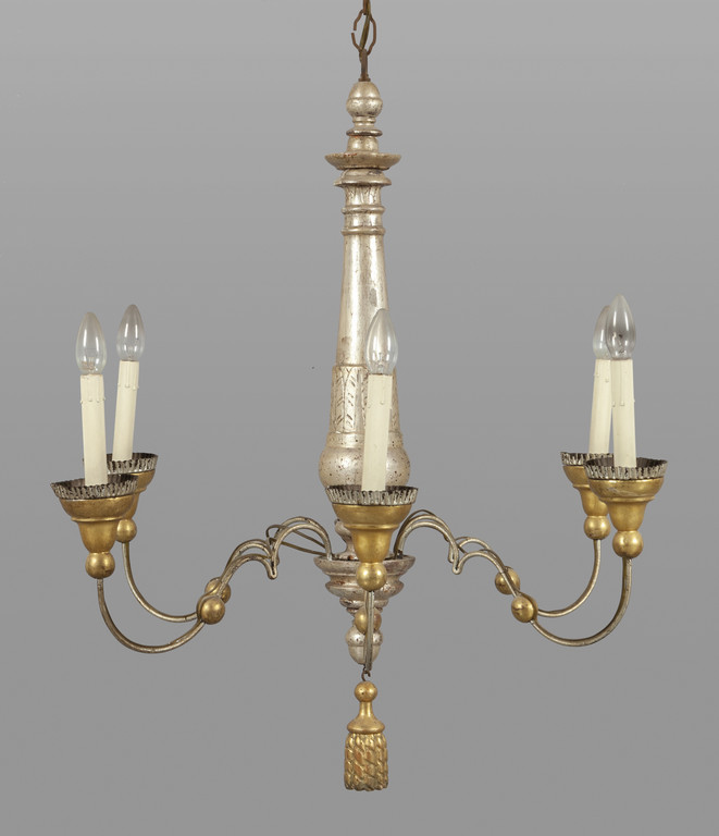 Lampadario Luigi XVI a sei luci con fusto in legno dorato a mecca Piemonte inizi sec.XIX