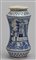 Albarello in ceramica decorata bianca e blu con torre Centro Italia sec.XIX