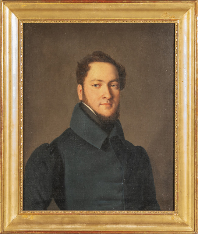 Scuola lombarda sec.XIX 'Ritratto' olio cornice coeva in legno intagliato e dorato