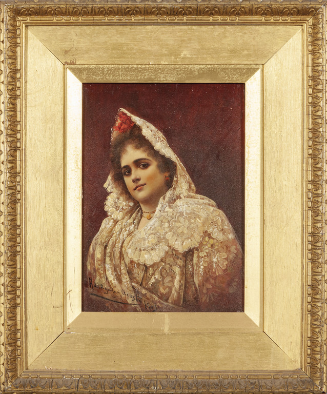 Scuola spagnola sec.XIX 'Ritratto di giovane' olio su tavoletta f.to in b. a s. e d.to 1903