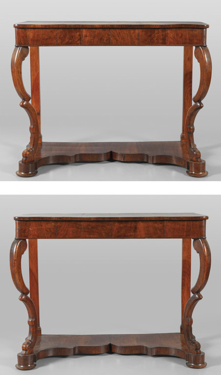 Coppia di consoles lastronate in mogano sec.XIX