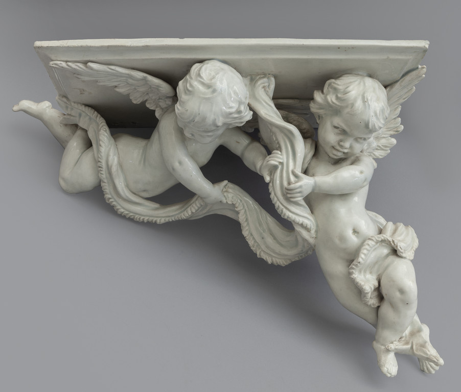 Mensola in porcellana bianca raffigurante due angioletti sec. XX
