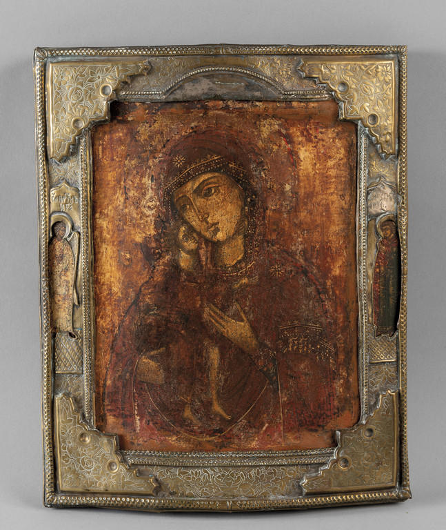 Madonna con Bambino icona riza in rame sbalzato sec.XVIII