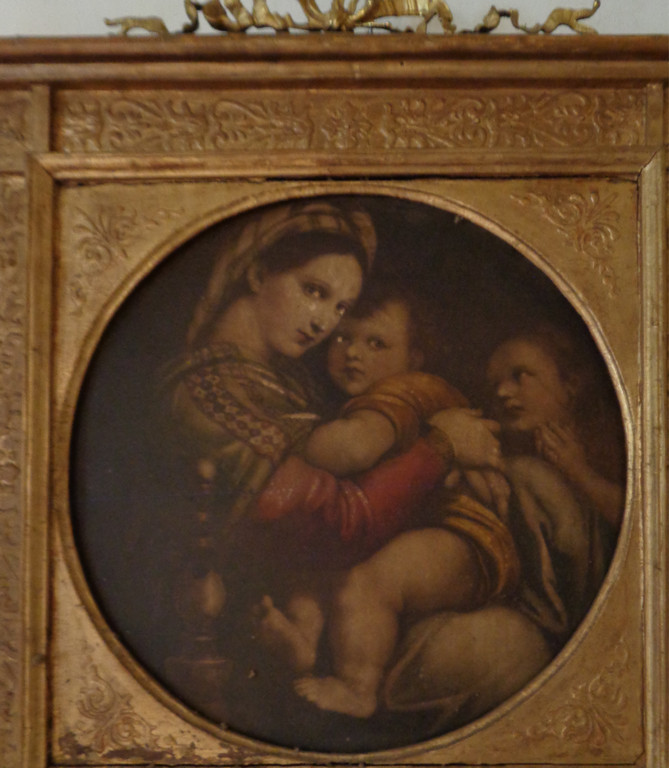 La Madonna della Seggiola stampa rotonda in cornice sec.XIX