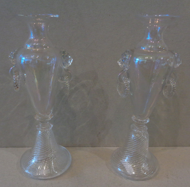 Coppia di vasetti in vetro con anelli Murano sec.XX