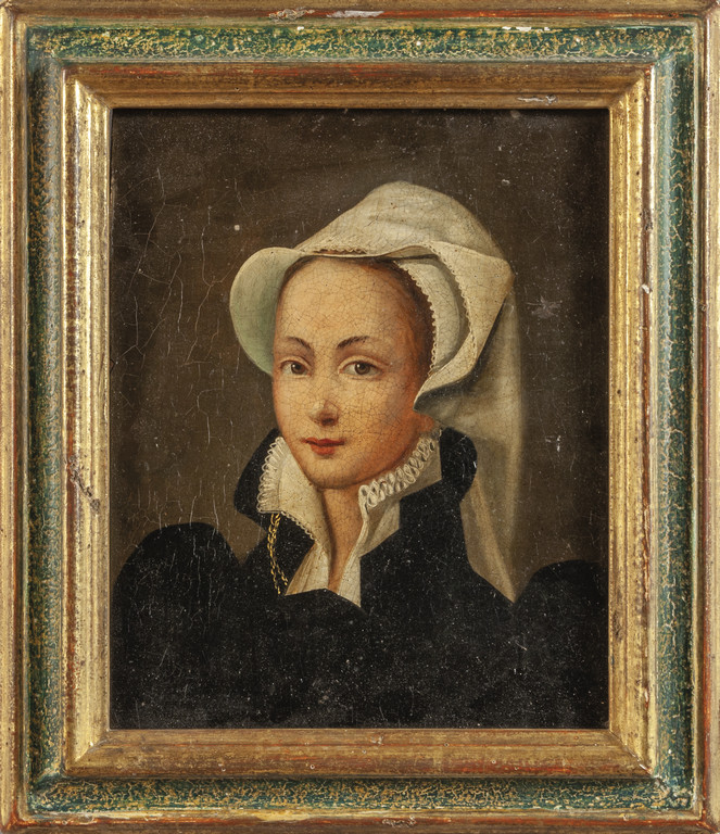 Scuola fiamminga sec.XIX 'Fanciulla con cufietta bianca' olio su tavola