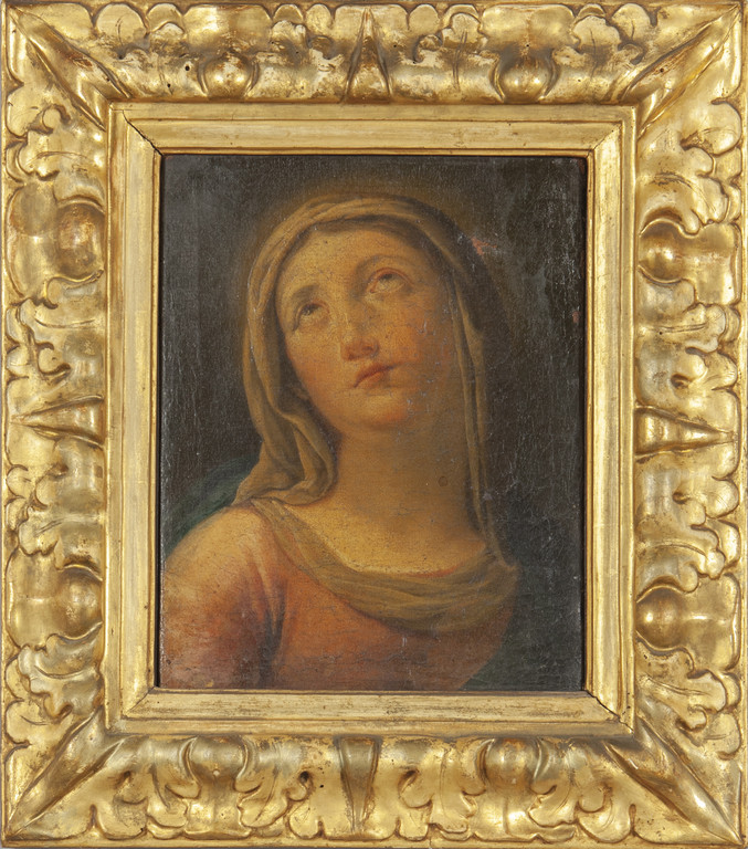 Bottega di Guido Reni 'Mater Dolorosa' olio cornice dorata sul retro expertise di Ildebrando Bossi d.ta 1963