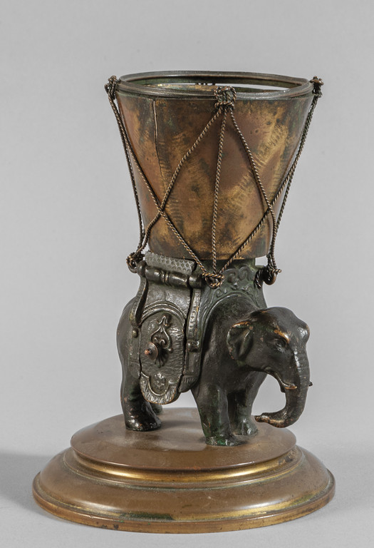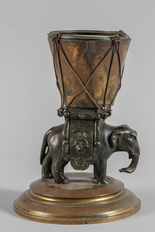 Elefante con tamburo scultura in bronzo e rame sec.XIX