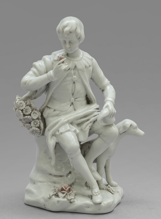 Gentiluomo con cane scultura in porcellana bianca di Capidimonte sec.XIX