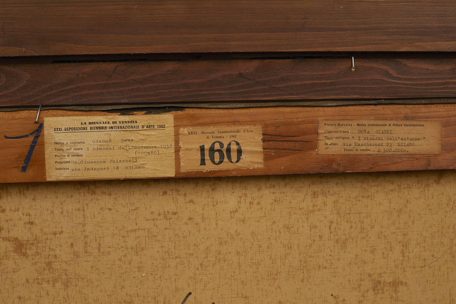 L'opera è accompagnata da certificato di autenticità su fotografia rilasciato da Maurizia Dova, Archivio delle opere di Gianni Dova, Milano in data 01/02/2020.