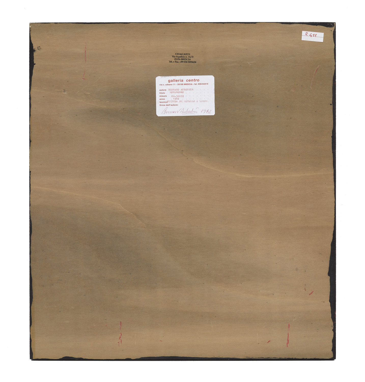 Etichetta della Galleria Centro, Brescia sul retro con firma dell'artista