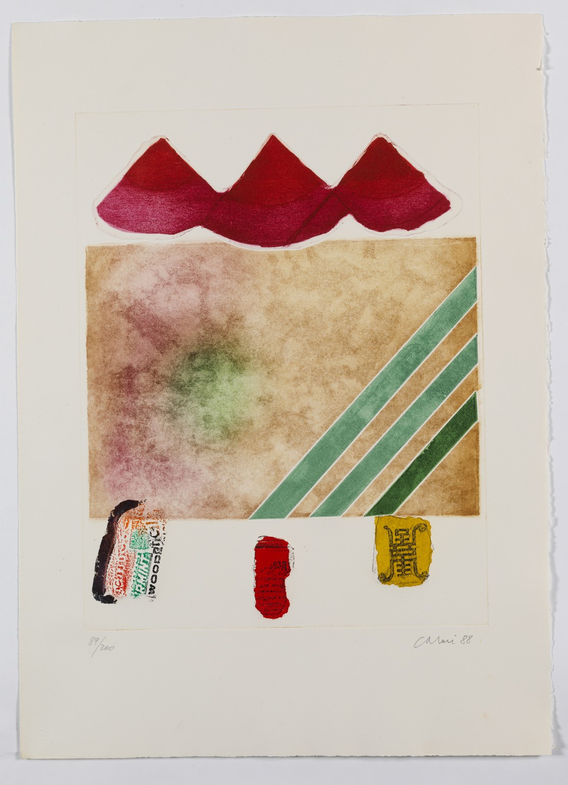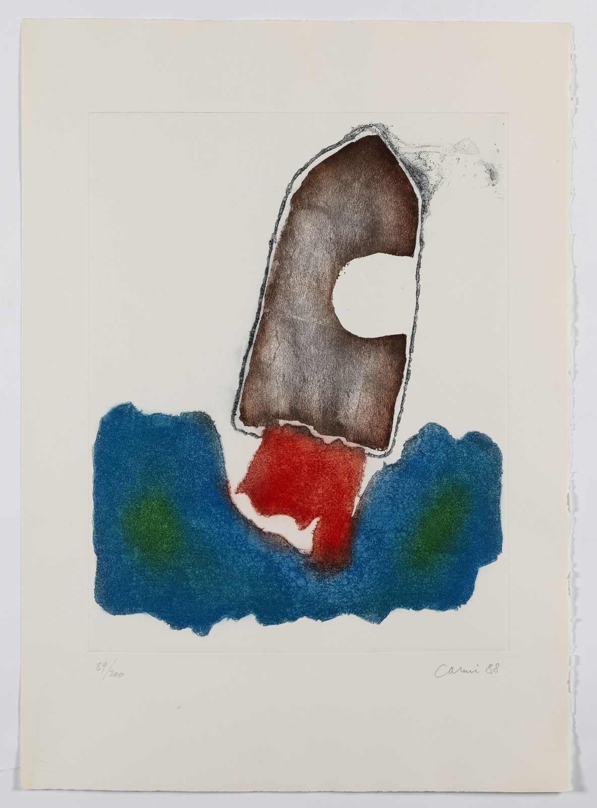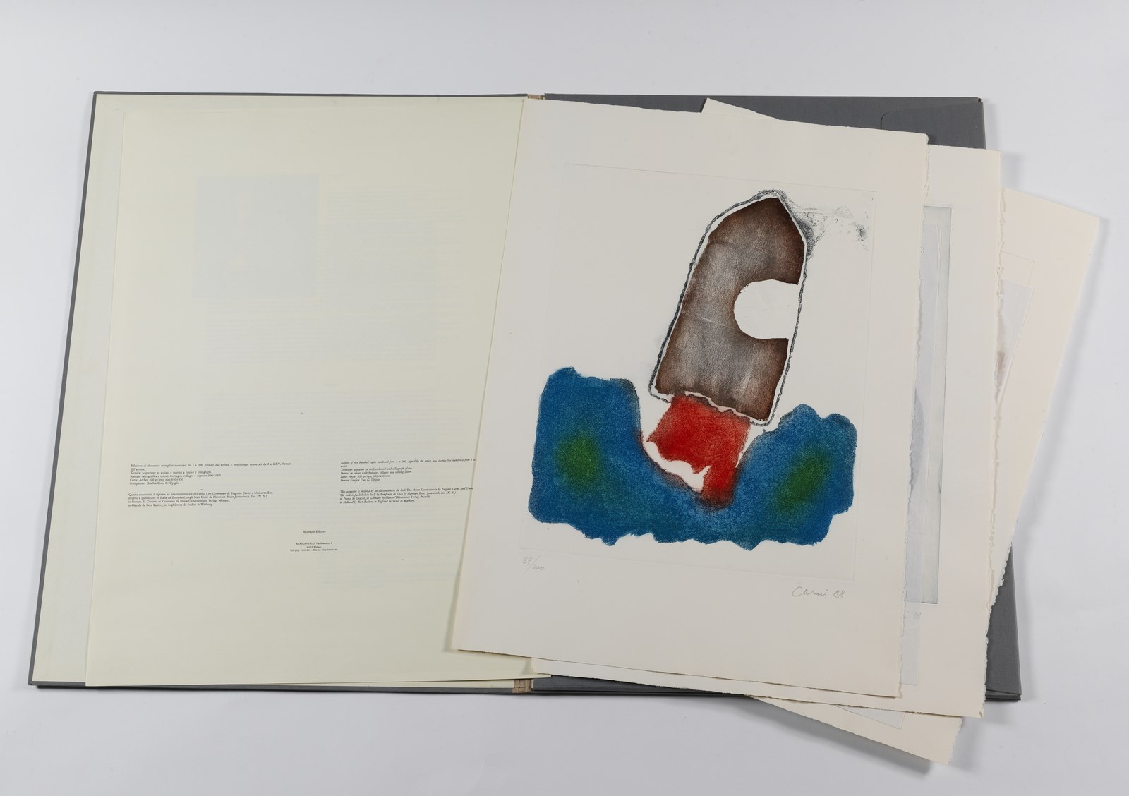 CARMI EUGENIO (n. 1920). Lotto composto da n.3 fogli. Senza titolo.. 89/200. Tutte le grafiche sono firmate, numerate e datate in basso a matita. Dimensione lastra: 43.5x33.5 cm. Editore: Biograph, Milano. Stampatore: Grafica Uno, G. Upiglio. Edizione totale: 200 copie numerate da 1/200 a 200/200 + 25 copie numerate da I/XXV a XXV/XXV. Le grafiche sono ispirate dalle illustrazioni del libro La Bambola e il Generale di Eugenio Carmi e Umberto Eco, Bompiani editore. Presente colophon e cartella originale.. Cm 45,00 x 63,00. 1988