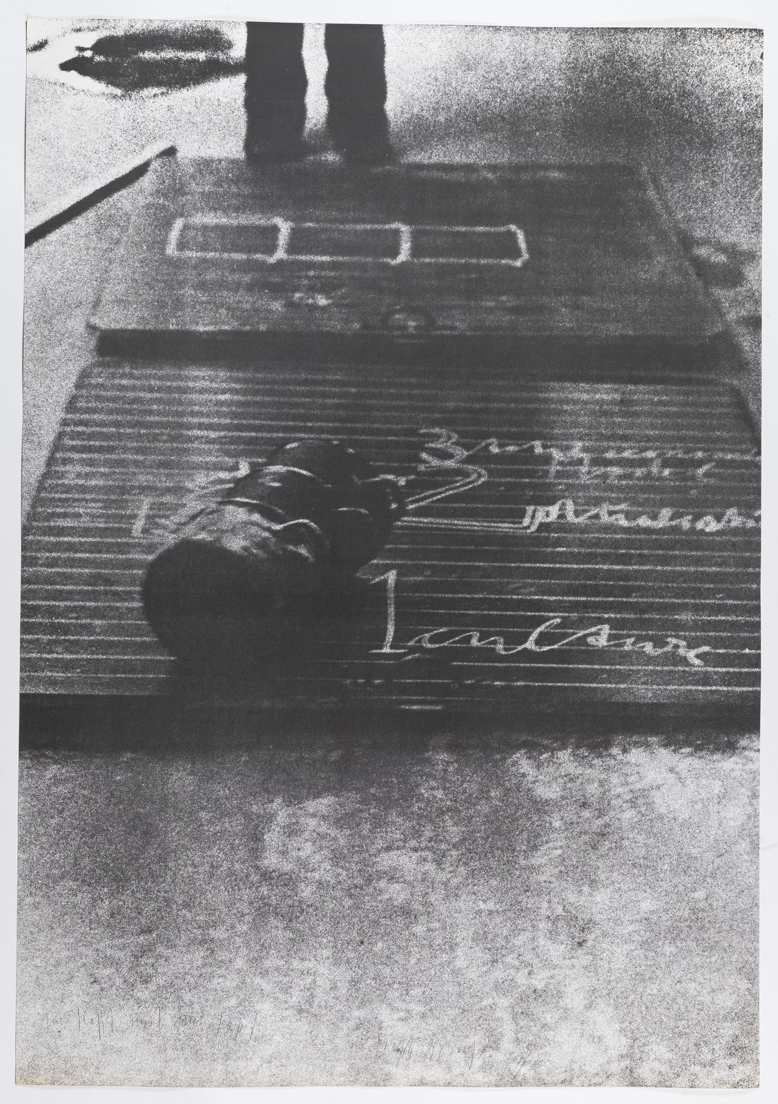 BEUYS JOSEPH (1921 - 1986). In Kopf und topf.. 26/160. Tiratura, titolo, firma e anno in basso a matita. Al retro timbro Edizioni Factotum Art, Calaone ,Padova. Lievi difetti. Eizione totale: 100 + XXX + 20 P.A. Fotografia di Caroline Tisdall della performance Three pots action in the poor house, Edinburgo, Scozia. Bibliografia: Schellmann, tav. 205. . Cm 70,00 x 100,00. 1978