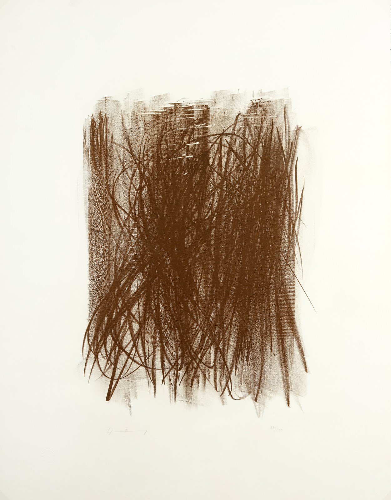 HARTUNG HANS (1904 - 1989). L 92.. 37/100. Tiratura e firma in basso a matita. Timbro a secco Erken Presse St Gallen in basso a sinistra. Bibliografia: Mason 170. Di questa edizione 50 esemplari sono stati stampati in bruno cappuccino e 50 in nero.. Cm 53,00 x 68,00. 1963