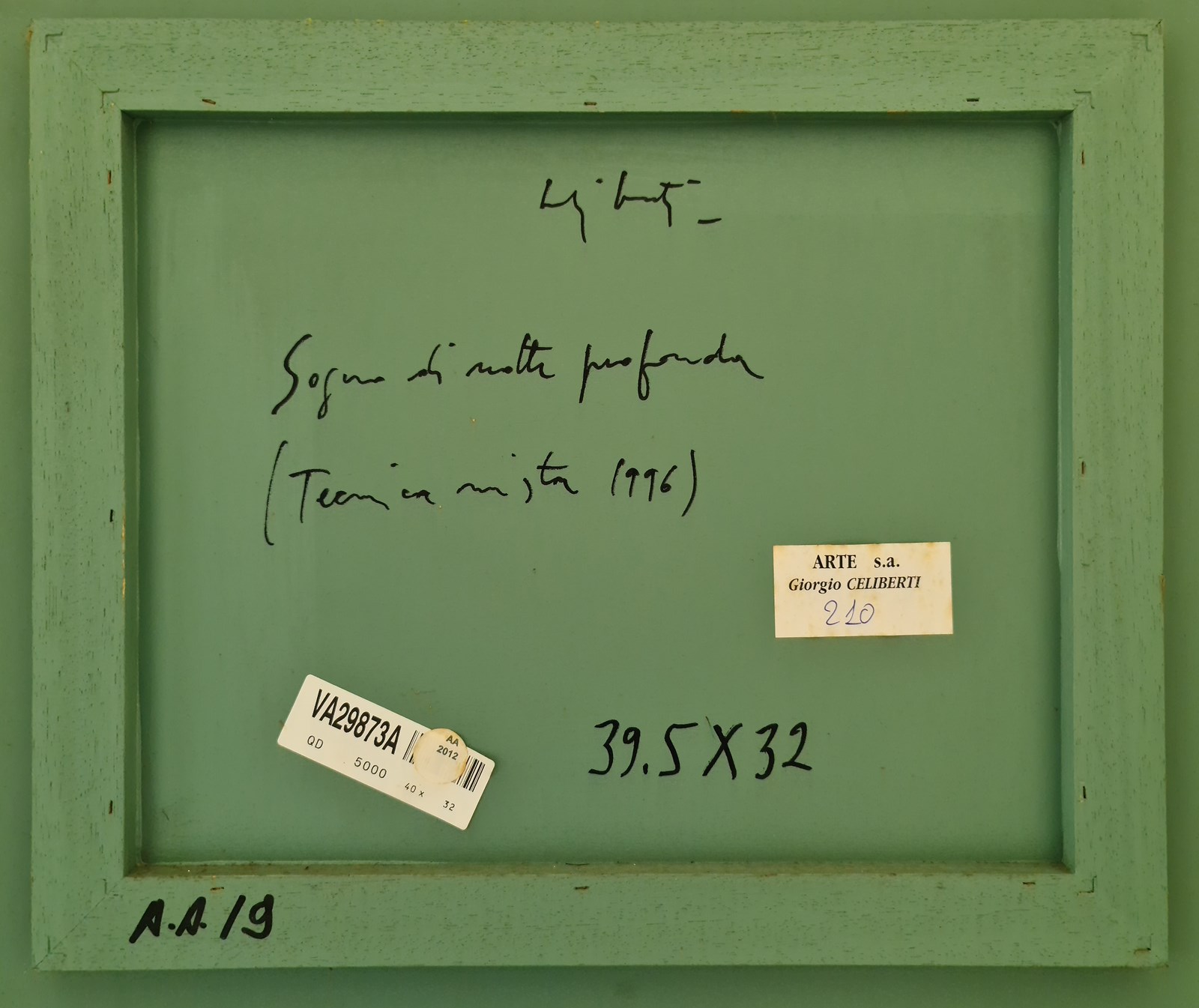 CELIBERTI GIORGIO (n. 1929). Sogno di notte profonda.. Autentica dell'artista su fotografia riportante il relativo numero d'inventario.. Cm 32,00 x 39,50. 1996