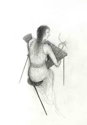 GIULIANO GUATTA Donna seduta al tavolo, 2012 Matita su carta cm 29,7x24