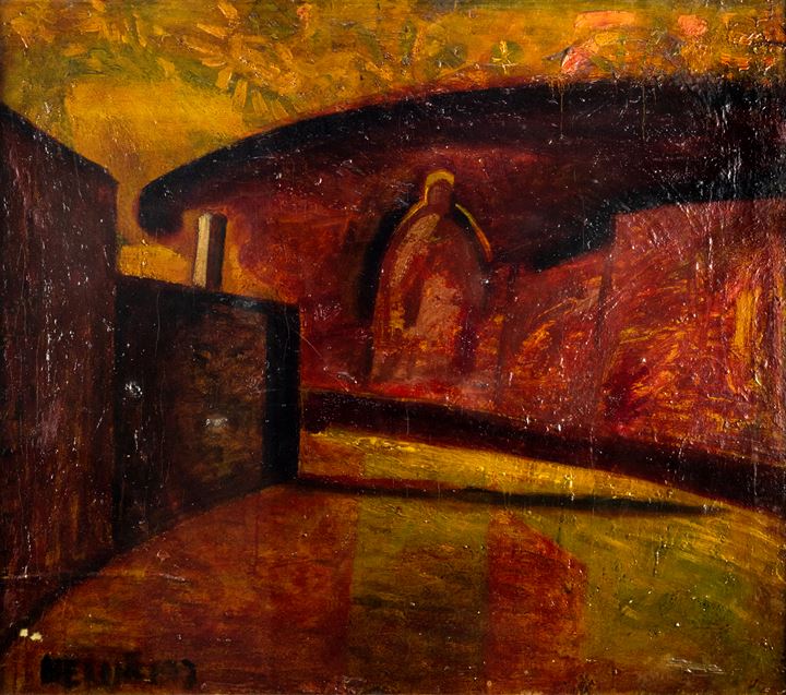 NERONE CECCARELLI<BR>Pisa 1937 – Parigi 1996<BR>"Via al tramonto" 19(?)7