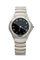 Cassa in acciaio con lunetta incisa; bracciale integrato in acciaio; quadrante antracite con numeri romani applicati; corona con zaffiro cabochon; secondi al centro e datario al 3