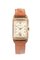 Cassa laminata in oro 10 Kt, di forma; quadrante con patina vintage (difetti); minuteria a binario serigrafata e numeri arabi