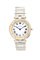Cassa in acciaio con lunetta e viti in oro giallo; quadrante bianco con craquelet con numeri romani serigrafati e minuteria a binario; bracciale integrato in acciaio con viti in oro giallo
