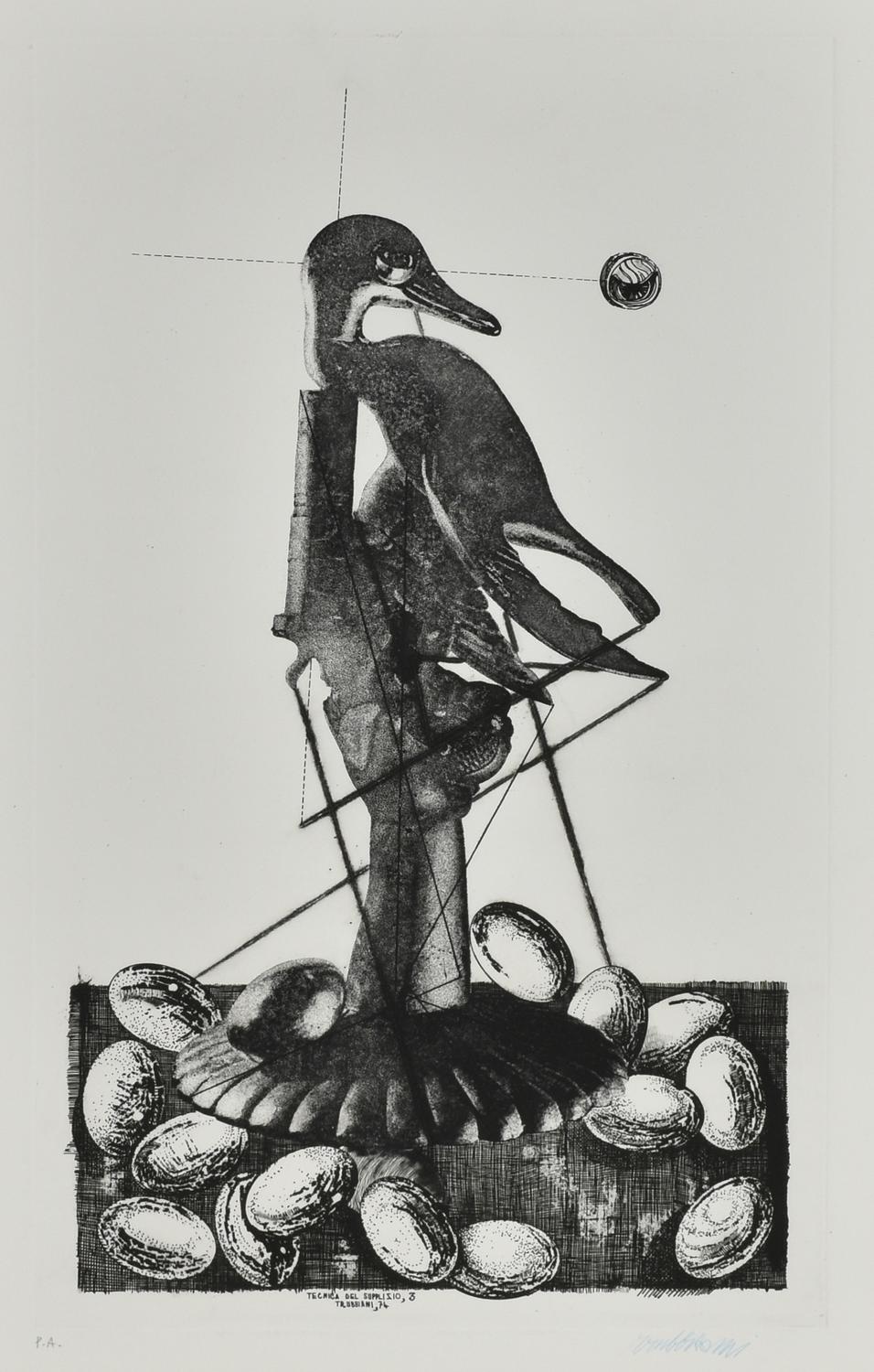 - TECNICA DEL SUPPLIZIO 3, acquaforte su carta, battuta cm 50x29; es. prova d'autore; firma